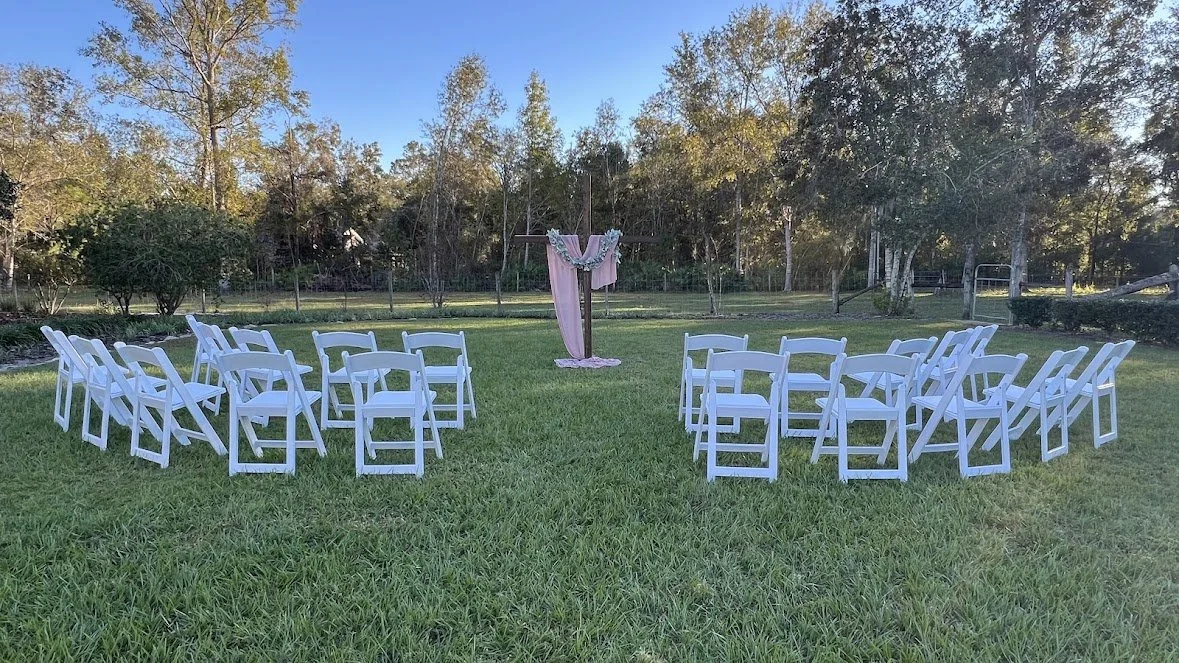 Let us know if you would like a beach wedding. Our resin padded chairs are a popular choice. We will deliver the chairs to the beach of choice and set them up before your ceremony. And pick them up after you are all done.